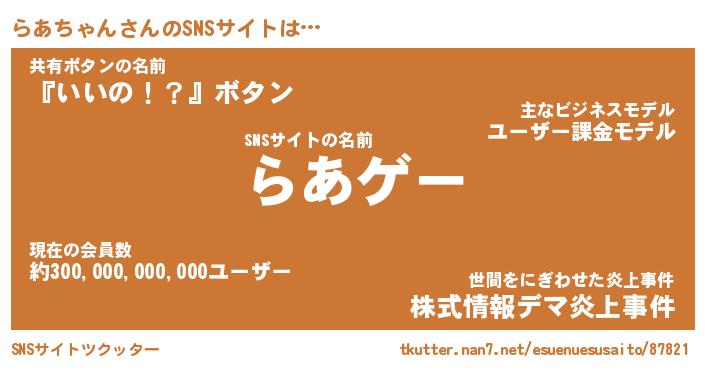 | ヒーロー風カッコイイあだ名 | 『スーパーラアチャン』『幻影騎士ラア』 |