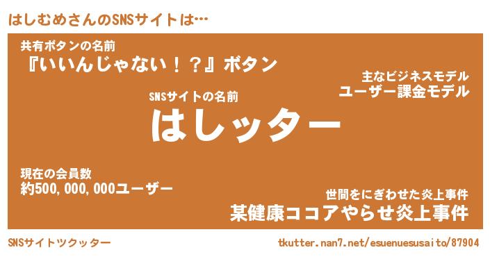 | 意味不明あだ名 | 『ペロリンはしむめ』『永久保存はしむめ』 |
