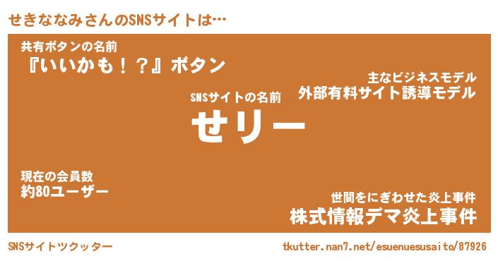 | 肩書あだ名 | 『せきななみ店長』『せきななみ総理大臣』 |