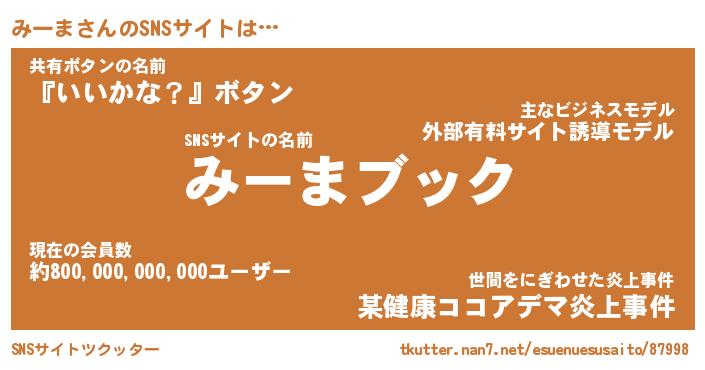 | 胡散臭い通販商品みたいなあだ名 | 『億万長者になれるブレスレット…その名も「みーま」』 |