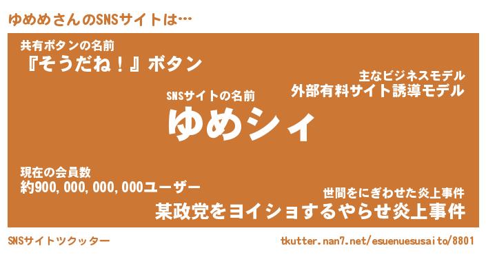 | ヘコむあだ名 | 『ゆめにゅー』『つくし』『ゆめ太郎』 |