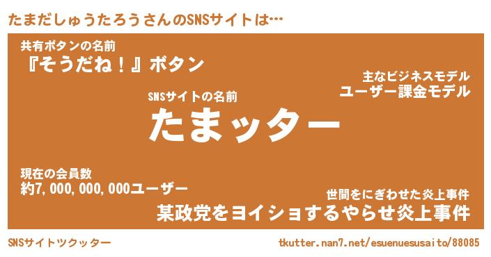 | 肩書あだ名 | 『たまだしゅうたろうCEO』 |