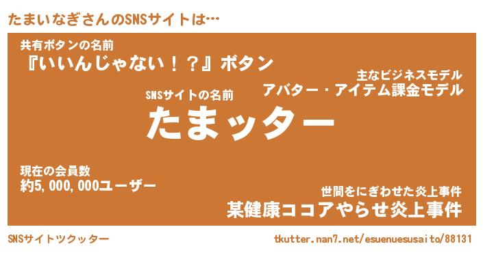 | ヒーロー風カッコイイあだ名 | 『スーパータマイナギ』『幻影騎士タマ』 |