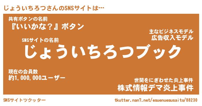 | 肩書あだ名 | 『じょういちろつ社長』 |