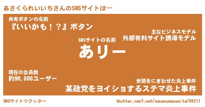 | 肩書あだ名 | 『あさくられいいち社長』 |