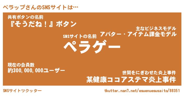 | 意味不明あだ名 | 『ペロリンペラップ』『永久保存ペラップ』 |