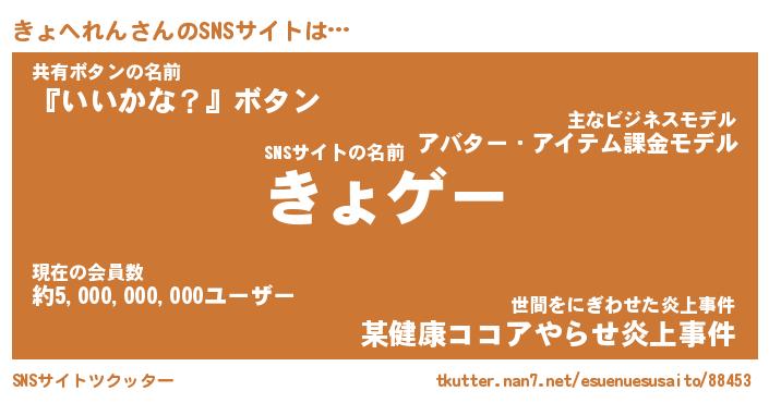 | ファンタジー風あだ名 | 『キョフェル』『エターナルキョヘレンー』 |