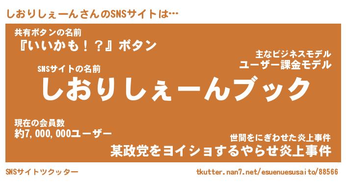 | 胡散臭い通販商品みたいなあだ名 | 『億万長者になれる霊験あらたかなお札…その名も「しおりしぇーん」』 |