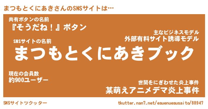 | 肩書あだ名 | 『まつもとくにあきCEO』 |