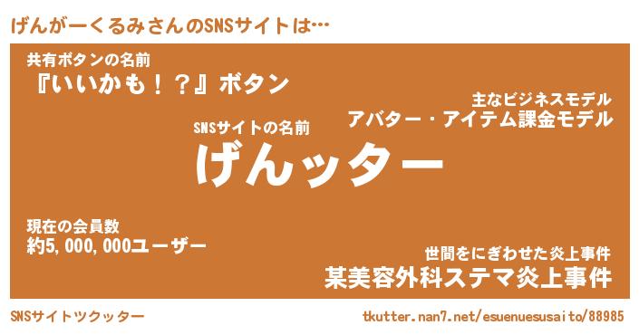 | 肩書あだ名 | 『げんがーくるみ社長』 |