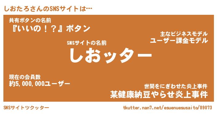 | 胡散臭い通販商品みたいなあだ名 | 『億万長者になれる霊験あらたかなお札…その名も「しおたろ」』 |