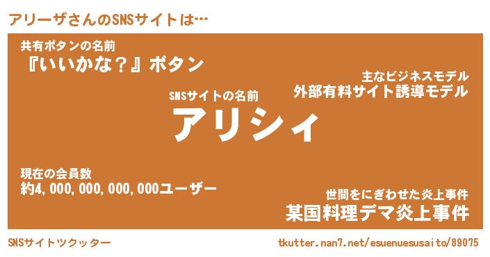 | 意味不明あだ名 | 『ペロリンアリーザ』『永久保存アリーザ』 |