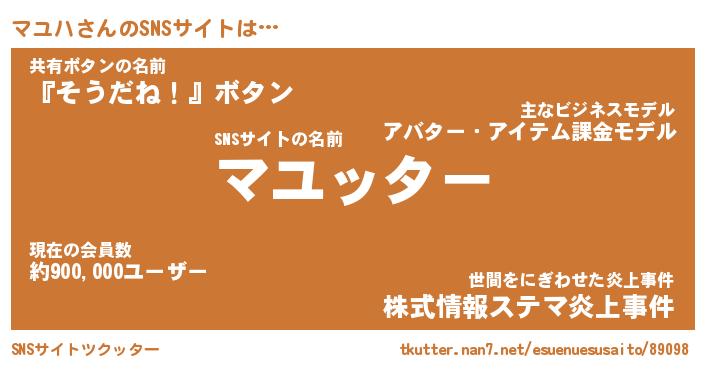 肩書あだ名 | 『マユハ社長』『マユハ総理大臣』 |