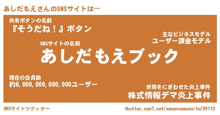 | 男性向けラノベタイトル風あだ名 | 『アシダモエアートオンライン』 |