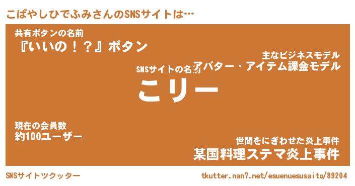 | ポケモン風あだ名 | 『コバチュウ』『コバヤダネ』 |