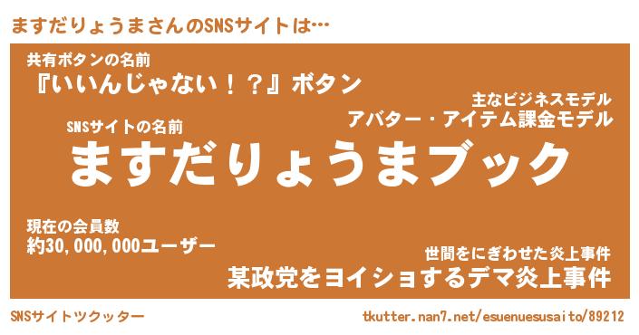 | 女子向けラノベタイトル風あだ名 | 『誰かこのますだりょうまを説明してください! ~契約から始まるウェディング~』 |