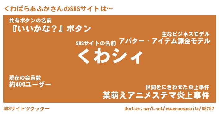 | 胡散臭い通販商品みたいなあだ名 | 『必ず成功する霊験あらたかなお札…その名も「くわばらあふか」』 |