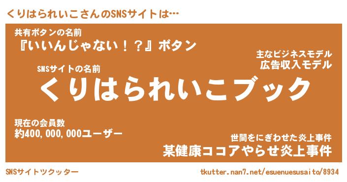 | ツイッター | くりはられいこさんのツイッターID『namakemono_nyan』 |