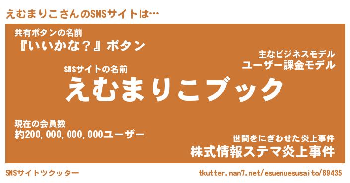 | 胡散臭い通販商品みたいなあだ名 | 『億万長者になれる霊験あらたかなお札…その名も「えむまりこ」』 |