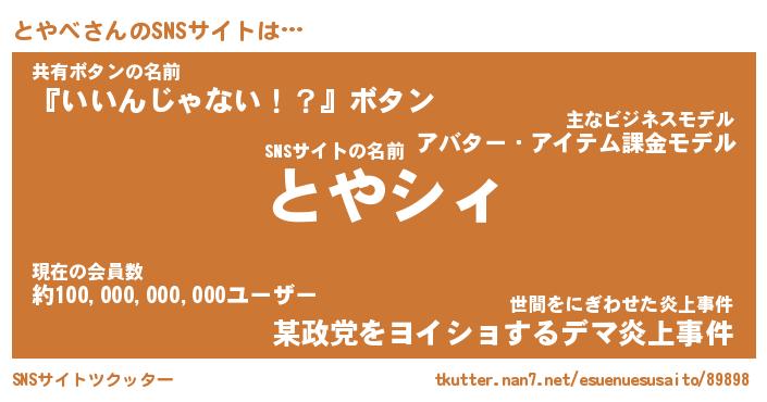 | ファンタジー風あだ名 | 『トヤフェル』『エターナルトヤベー』 |