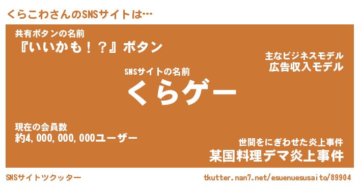 | 男性向けラノベタイトル風あだ名 | 『くらこわの憂鬱』 |