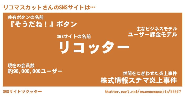 | 胡散臭い通販商品みたいなあだ名 | 『億万長者になれる水晶球…その名も「リコマスカット」』 |