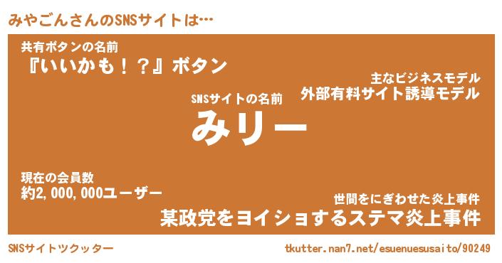 | 意味不明あだ名 | 『ペロリンみやごん』『永久保存みやごん』 |