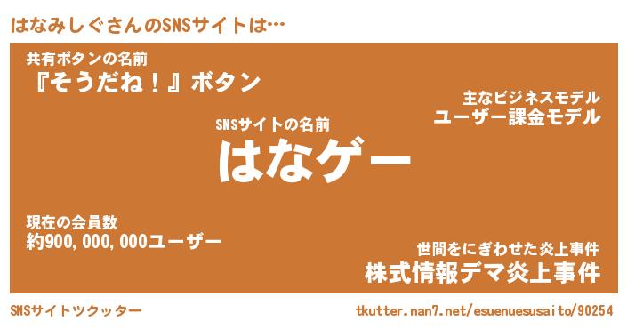 | 肩書あだ名 | 『はなみしぐCEO』『はなみしぐ国家主席』 |