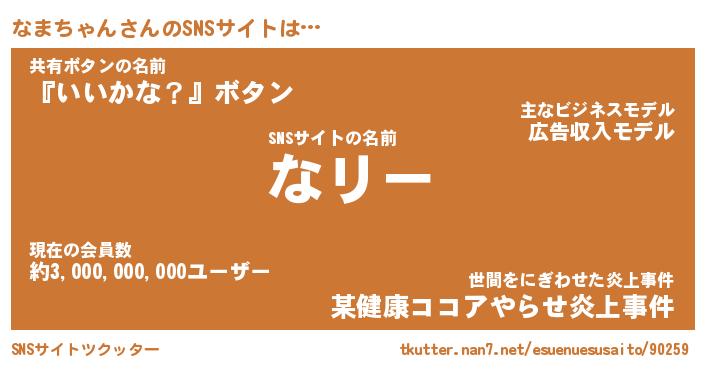 | ファンタジー風あだ名 | 『ナマフェル』『エターナルナマチャンー』 |