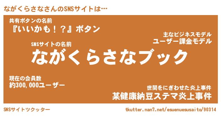 | 胡散臭い通販商品みたいなあだ名 | 『億万長者になれる水晶球…その名も「ながくらさな」』 |