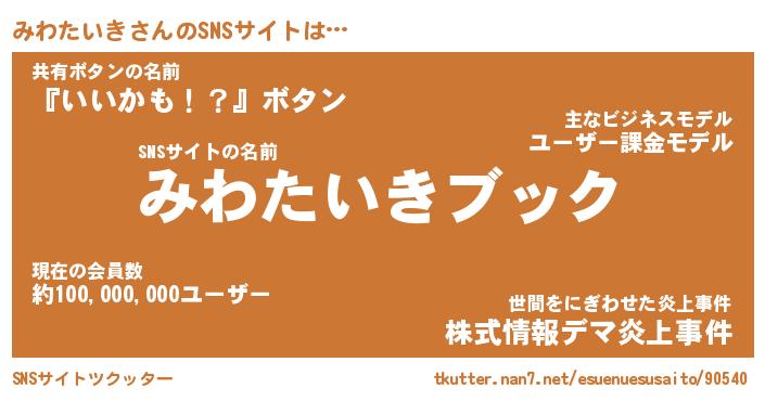 | 胡散臭い通販商品みたいなあだ名 | 『億万長者になれる霊験あらたかなお札…その名も「みわたいき」』 |