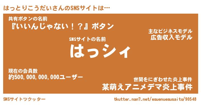 | 女子向けラノベタイトル風あだ名 | 『(仮)はっとりこうだいのやんごとなき事情』 |