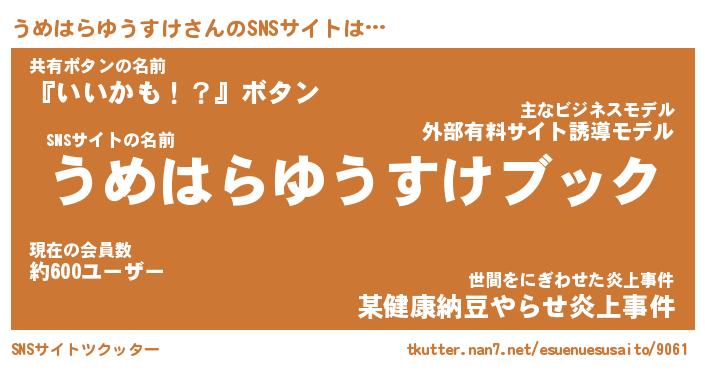 | 胡散臭い通販商品みたいなあだ名 | 『億万長者になれる霊験あらたかなお札…その名も「うめはらゆうすけ」』 |