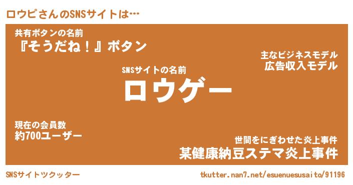 | 肩書あだ名 | 『ロウピCEO』『ロウピ総理大臣』 |