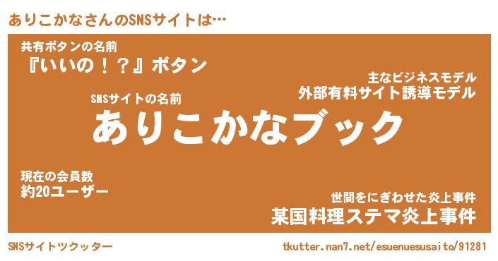 | ツイッター | ありこかなさんのツイッターID『namakemono_idle』 |