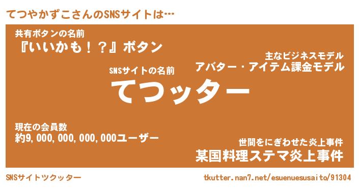 | 男性向けラノベタイトル風あだ名 | 『テツヤカズコアートオンライン』 |