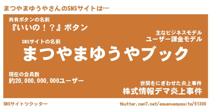 | 胡散臭い通販商品みたいなあだ名 | 『億万長者になれる霊験あらたかなお札…その名も「まつやまゆうや」』 |