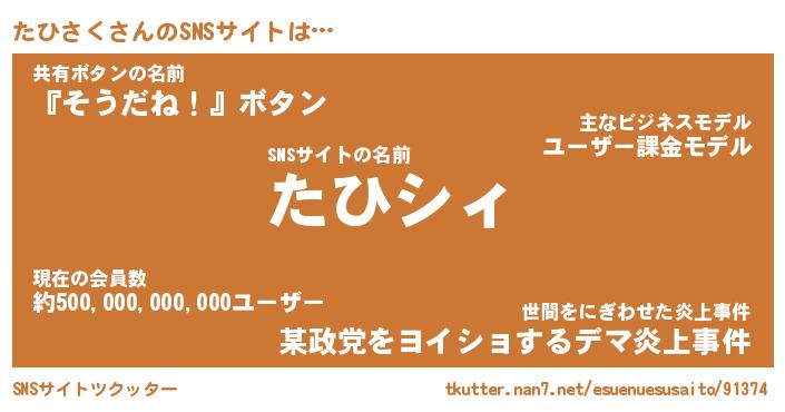| ファンタジー風あだ名 | 『タヒフェル』『エターナルタヒサクー』 |