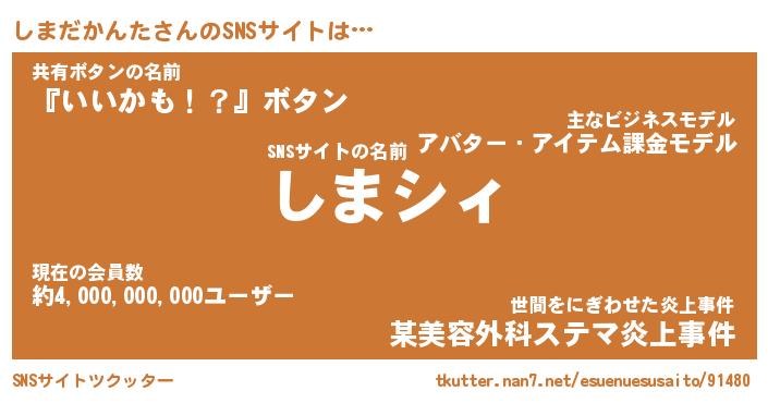 | ヘコむあだ名 | 『しまもー』『なまこ酢』『しまっぺ』 |