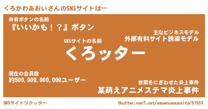 | 胡散臭い通販商品みたいなあだ名 | 『億万長者になれるブレスレット…その名も「くろかわあおい」』 |