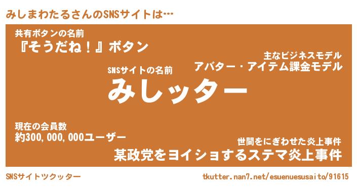 | 胡散臭い通販商品みたいなあだ名 | 『億万長者になれる水晶球…その名も「みしまわたる」』 |