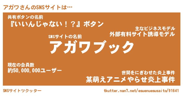 | 肩書あだ名 | 『アガワ社長』『アガワ総理大臣』 |