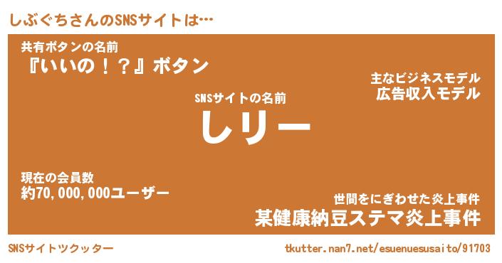 | 男性向けラノベタイトル風あだ名 | 『しぶぐちの憂鬱』 |