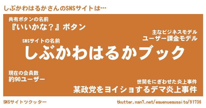 | 肩書あだ名 | 『しぶかわはるか御曹司』 |