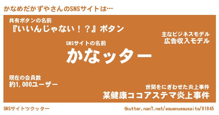 | 肩書あだ名 | 『かなめだかずや店長』 |
