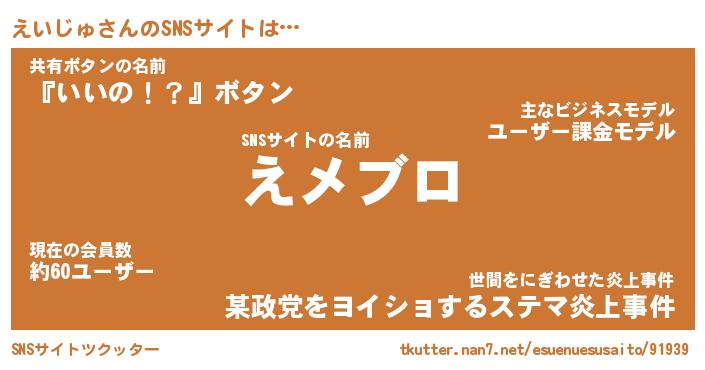 | 肩書あだ名 | 『えいじゅCEO』『えいじゅ大統領』 |