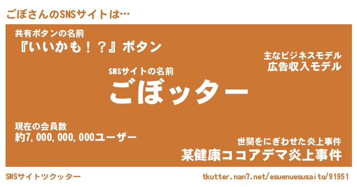 | 胡散臭い通販商品みたいなあだ名 | 『億万長者になれるブレスレット…その名も「ごぼ」』 |