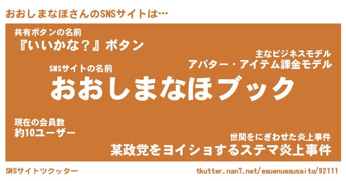 | 男性向けラノベタイトル風あだ名 | 『オオシマナホアートオンライン』 |