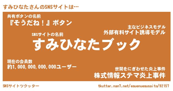 | 胡散臭い通販商品みたいなあだ名 | 『億万長者になれるブレスレット…その名も「すみひなた」』 |