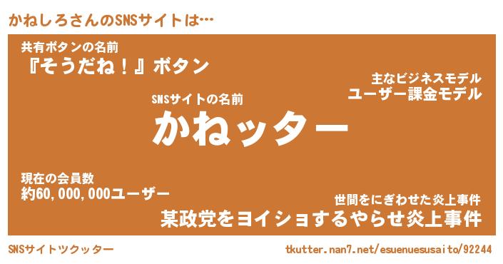 | ポケモン風あだ名 | 『カネチュウ』『カネシダネ』 |